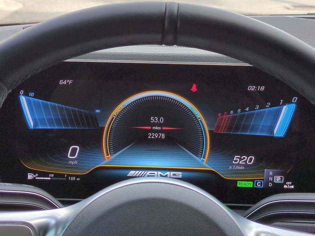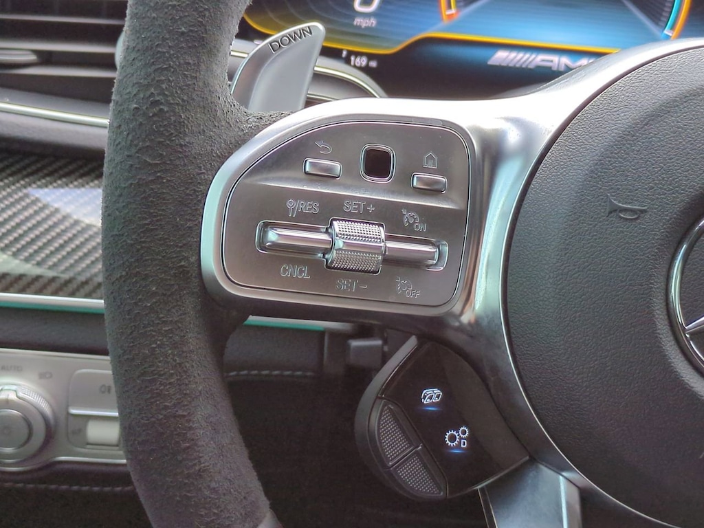 This vehicle Includes the Following Features and Options: 13 Speakers, 21" AMG® Twin 5-Spoke Wheels, 4-Wheel Disc Brakes, ABS brakes, Adaptive suspension, Air Conditioning, Alloy wheels, AM/FM radio: SiriusXM, Anti-whiplash front head restraints, Apple CarPlay®/Android Auto®, Auto High-beam Headlights, Auto tilt-away steering wheel, Auto-dimming door mirrors, Auto-dimming Rear-View mirror, Auto-leveling suspension, Automatic temperature control, Axle Ratio: TBD, Brake assist, Bumpers: body-color, Compass, Delay-off headlights, Driver door bin, Driver vanity mirror, Dual front impact airbags, Dual front side impact airbags, Electronic Stability Control, Emergency communication system: eCall Emergency System, Exterior Parking Camera Rear, Four wheel independent suspension, Front anti-roll bar, Front Bucket Seats, Front Center Armrest, Front dual zone A/C, Front reading lights, Fully automatic headlights, Garage door transmitter: HomeLink, Genuine wood console insert, Genuine wood dashboard insert, Genuine wood door panel insert, Heated door mirrors, Heated front seats, Heated Power Front Seats w/Driver Memory, High Performance Tires, Illuminated entry, Knee airbag, Leather steering wheel, Low tire pressure warning, MB-Tex Upholstery w/DINAMICA Inserts, Memory seat, Navigation system: MBUX, Occupant sensing airbag, Outside temperature display, Overhead airbag, Panic alarm, Passenger door bin, Passenger vanity mirror, Power adjustable front head restraints, Power door mirrors, Power driver seat, Power Liftgate, Power moonroof: Panorama, Power passenger seat, Power steering, Power windows, Premium audio system: MBUX, Radio data system, Radio: MBUX 12.3" Media Display w/Touchscreen, Rain sensing wipers, Rear anti-roll bar, Rear fog lights, Rear reading lights, Rear seat center armrest, Rear window defroster, Remote keyless entry, Security system, Speed control, Speed-sensing steering, Speed-Sensitive Wipers, Split folding rear seat, Spoiler, Sport steering wheel, Steering wheel memory, Steering wheel mounted audio controls, Tachometer, Telescoping steering wheel, Tilt steering wheel, Traction control, Trip computer, Turn signal indicator mirrors, and Weather band radio.