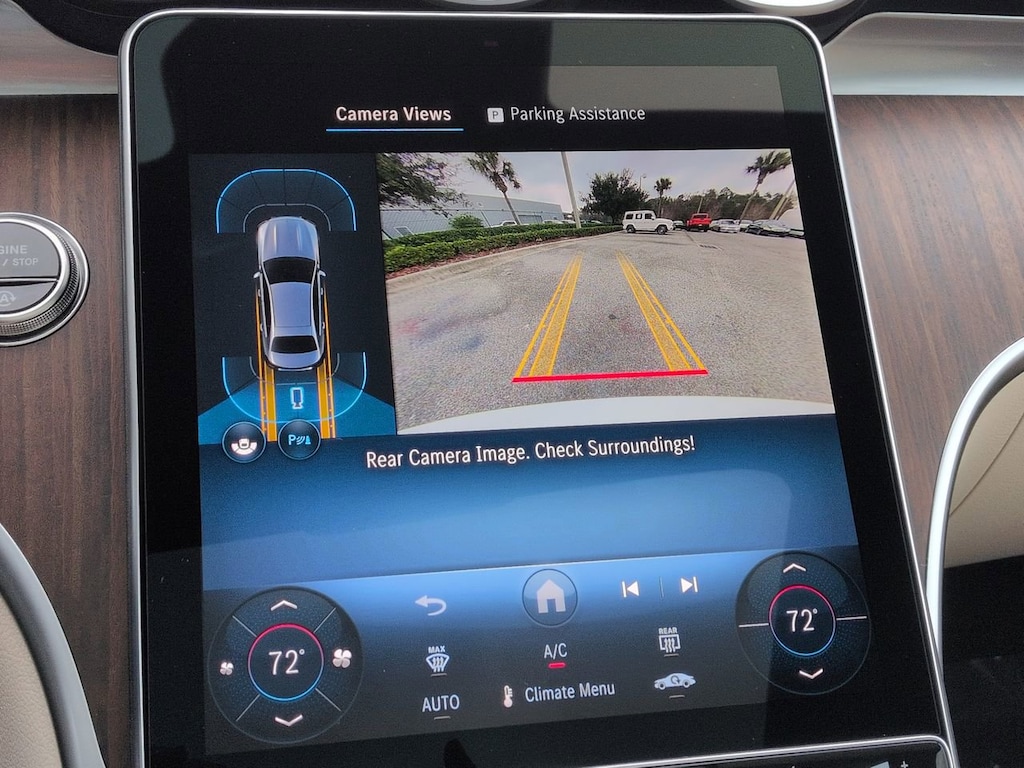 This vehicle Includes the Following Features and Options: 11.9" Center Touchscreen Display, 4-Wheel Disc Brakes, 5 Speakers, ABS brakes, Air Conditioning, Alloy wheels, AM/FM radio: SiriusXM, Anti-whiplash front head restraints, Apple CarPlay®/Android Auto®, Auto High-beam Headlights, Auto tilt-away steering wheel, Auto-dimming door mirrors, Auto-dimming Rear-View mirror, Automatic temperature control, Black Fabric Headliner, Brake assist, Bumpers: body-color, Child-Seat-Sensing Airbag, Compass, Delay-off headlights, Driver door bin, Driver vanity mirror, Dual front impact airbags, Dual front side impact airbags, Electronic Stability Control, Emergency communication system: Mercedes-Benz Emergency Call Service, Exterior Parking Camera Rear, First Aid Kit, Four wheel independent suspension, Front anti-roll bar, Front Bucket Seats, Front Center Armrest, Front dual zone A/C, Front reading lights, Fully automatic headlights, Garage door transmitter: HomeLink, Genuine wood dashboard insert, GUARD 360, Head restraints memory, Heated door mirrors, Heated front seats, Illuminated entry, Knee airbag, Leather steering wheel, Low tire pressure warning, MB-Tex Upholstery, Memory seat, Occupant sensing airbag, Outside temperature display, Overhead airbag, Overhead console, Panic alarm, Panorama Sunroof, Passenger door bin, Passenger vanity mirror, Piano Black Lacquer Center Console, Power adjustable front head restraints, Power door mirrors, Power driver seat, Power Heated Front Seats with Memory, Power moonroof, Power passenger seat, Power steering, Power windows, Premium audio system: MBUX, Radio data system, Radio: FrontBass 5-Speaker Audio System, Rain sensing wipers, Rear anti-roll bar, Rear fog lights, Rear reading lights, Rear seat center armrest, Rear window defroster, Remote keyless entry, Security system, SiriusXM Satellite Radio, Speed control, Speed-sensing steering, Split folding rear seat, Steering wheel memory, Steering wheel mounted audio controls, Tachometer, Telescoping steering wheel, Tilt steering wheel, Traction control, Trip computer, Turn signal indicator mirrors, Variably intermittent wipers, Weather band radio, Wheels: 7.5J x 18" Front and 8.5J x 18" Rear 5-Spoke, and Wheels: 7.5J x 18" Front and 8.5J x 18" Rear Multispoke.