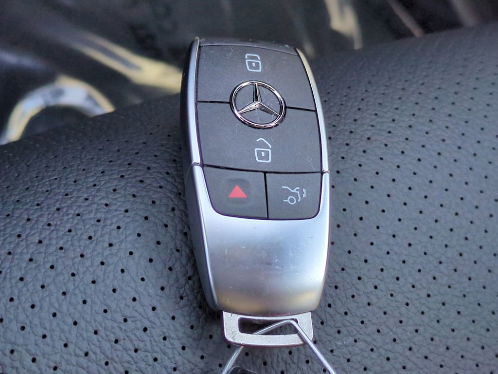 This vehicle Includes the Following Features and Options: 4-Wheel Disc Brakes, 8 Speakers, ABS brakes, Air Conditioning, Alloy wheels, AM/FM radio: SiriusXM, Anti-whiplash front head restraints, Apple CarPlay®/Android Auto®, Auto High-beam Headlights, Auto tilt-away steering wheel, Auto-dimming door mirrors, Auto-dimming Rear-View mirror, Automatic temperature control, Brake assist, Bumpers: body-color, Compass, Delay-off headlights, Driver door bin, Driver vanity mirror, Dual front impact airbags, Dual front side impact airbags, Electronic Stability Control, Emergency communication system: eCall Emergency System, Exterior Parking Camera Rear, Four wheel independent suspension, Front anti-roll bar, Front Bucket Seats, Front Center Armrest, Front dual zone A/C, Front reading lights, Fully automatic headlights, Garage door transmitter: HomeLink, Heated door mirrors, Heated Front Seats, Heated front seats, HERMES Communications Module LTE, Illuminated entry, Knee airbag, Leather steering wheel, Low tire pressure warning, MB Navigation, MB-Tex Seat Trim, Memory seat, Navigation system: MBUX, Occupant sensing airbag, Outside temperature display, Overhead airbag, Panic alarm, Passenger door bin, Passenger vanity mirror, Power adjustable front head restraints, Power door mirrors, Power driver seat, Power Front Seats, Power Liftgate, Power moonroof, Power passenger seat, Power steering, Power windows, Premium audio system: MBUX, Radio data system, Radio: 12.3" Media Display w/Touchscreen, Rain sensing wipers, Rear anti-roll bar, Rear fog lights, Rear reading lights, Rear seat center armrest, Rear window defroster, Rear window wiper, Remote keyless entry, Security system, SiriusXM Satellite Radio, Speed control, Speed-sensing steering, Speed-Sensitive Wipers, Split folding rear seat, Spoiler, Steering wheel memory, Steering wheel mounted audio controls, Tachometer, Telescoping steering wheel, Tilt steering wheel, Traction control, Trip computer, Turn signal indicator mirrors, Weather band radio, Wheels: 19" Twin 5-Spoke, Wireless Charging, and Wireless Smartphone Integration.