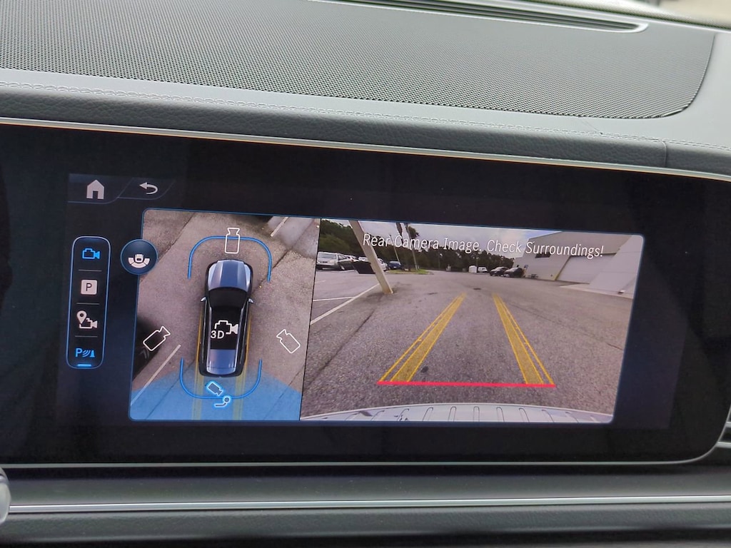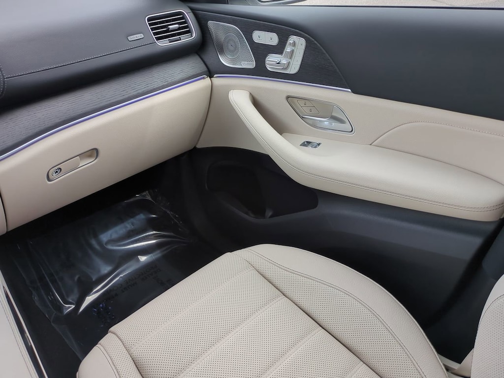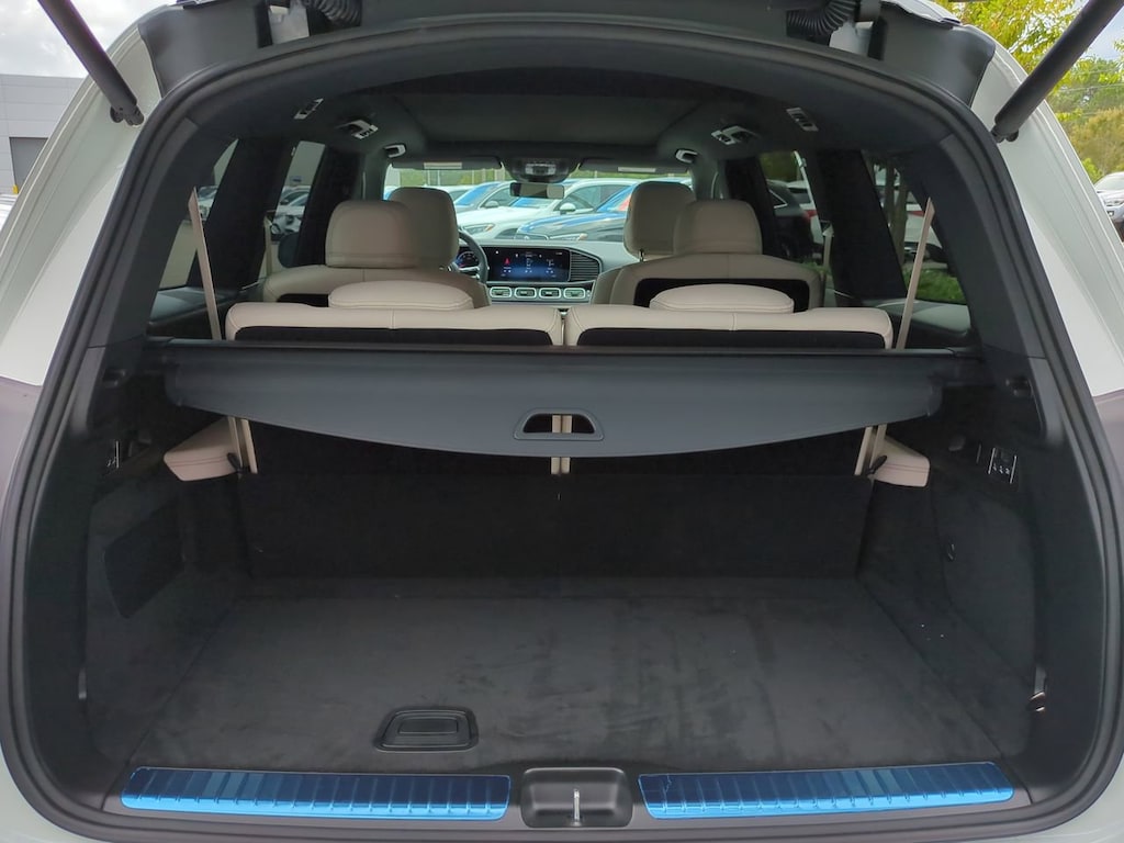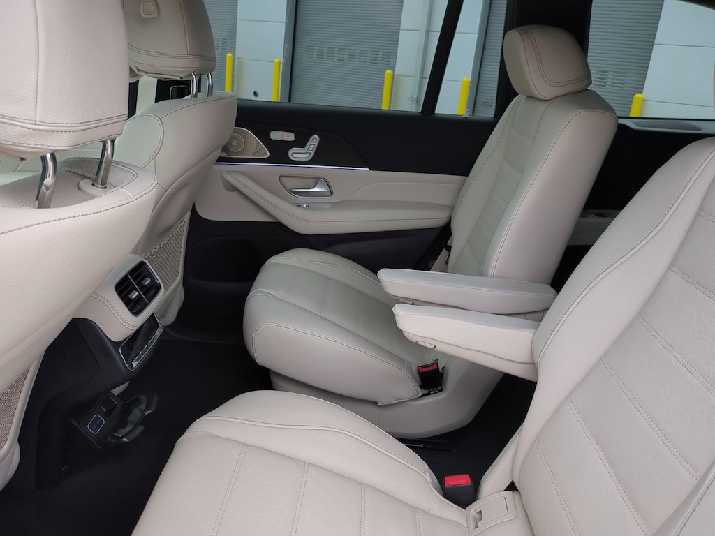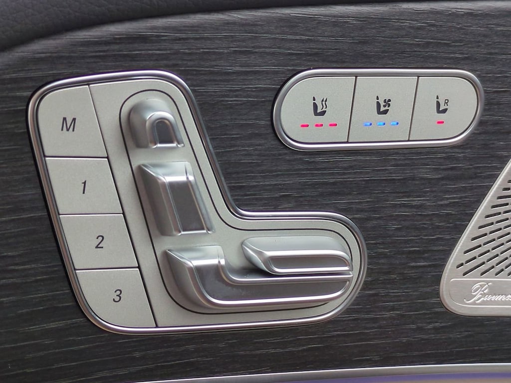 This vehicle Includes the Following Features and Options: 13 Speakers, 3rd row seats: split-bench, 4-Wheel Disc Brakes, 7-Seat Configuration, ABS brakes, Active Multicontour Power Front Seats with Massage, Adaptive suspension, Air Conditioning, Alloy wheels, AM/FM radio: SiriusXM, Apple CarPlay®/Android Auto®, Auto High-beam Headlights, Auto tilt-away steering wheel, Auto-dimming door mirrors, Auto-dimming Rear-View mirror, Auto-leveling suspension, Automatic temperature control, Brake assist, Bumpers: body-color, Burmester® Surround Sound System, Child-Seat-Sensing Airbag, Compass, Delay-off headlights, Driver door bin, Driver vanity mirror, Dual front impact airbags, Dual front side impact airbags, Electronic Stability Control, Emergency communication system: eCall Emergency System, Exterior Parking Camera Rear, Four wheel independent suspension, Front anti-roll bar, Front Bucket Seats, Front Center Armrest w/Storage, Front dual zone A/C, Front reading lights, Fully automatic headlights, Garage door transmitter: HomeLink, Head restraints memory, Heated door mirrors, Heated front seats, Heated rear seats, Heated steering wheel, Illuminated entry, Illuminated running boards, Knee airbag, Leather steering wheel, Leather Upholstery, Low tire pressure warning, Memory seat, Navigation system: MB Navigation, Occupant sensing airbag, Outside temperature display, Overhead airbag, Overhead console, Panic alarm, Passenger door bin, Passenger vanity mirror, Performance Tires, Power adjustable front head restraints, Power door mirrors, Power driver seat, Power Liftgate, Power moonroof: Panorama, Power passenger seat, Power steering, Power windows, Premium audio system: MBUX, Radio: MBUX Multimedia System, Rain sensing wipers, Rear air conditioning, Rear anti-roll bar, Rear dual zone A/C, Rear fog lights, Rear reading lights, Rear seat center armrest, Rear window defroster, Rear window wiper, Reclining 3rd row seat, Remote keyless entry, Security system, Speed control, Speed-sensing steering, Speed-Sensitive Wipers, Split folding rear seat, Spoiler, Steering wheel memory, Steering wheel mounted audio controls, Tachometer, Telescoping steering wheel, Tilt steering wheel, Traction control, Trip computer, Turn signal indicator mirrors, Variably intermittent wipers, Ventilated front seats, Weather band radio, and Wheels: 22" AMG® Multi-Spoke.
