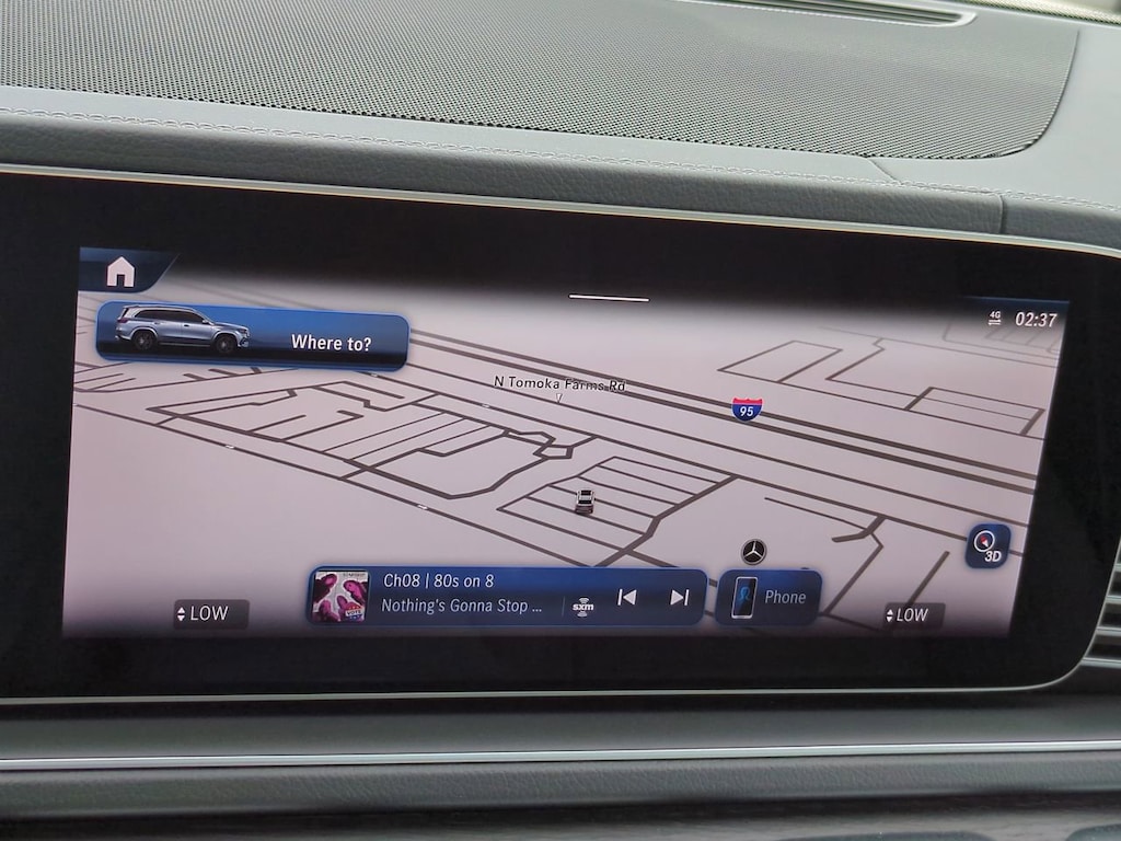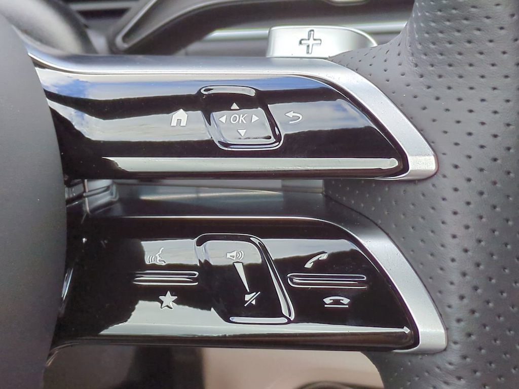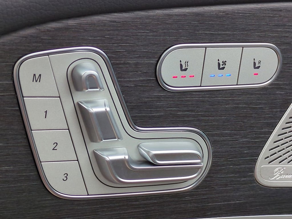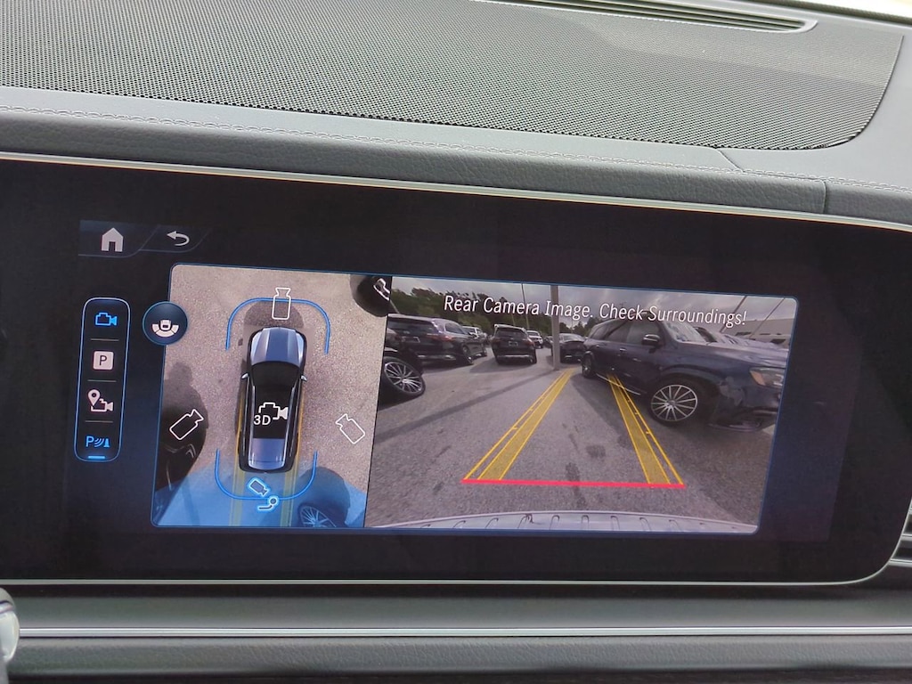 This vehicle Includes the Following Features and Options: 13 Speakers, 3rd row seats: split-bench, 4-Wheel Disc Brakes, 7-Seat Configuration, ABS brakes, Active Multicontour Power Front Seats with Massage, Adaptive suspension, Air Conditioning, Alloy wheels, AM/FM radio: SiriusXM, Apple CarPlay®/Android Auto®, Auto High-beam Headlights, Auto tilt-away steering wheel, Auto-dimming door mirrors, Auto-dimming Rear-View mirror, Auto-leveling suspension, Automatic temperature control, Brake assist, Bumpers: body-color, Burmester® Surround Sound System, Child-Seat-Sensing Airbag, Compass, Delay-off headlights, Driver door bin, Driver vanity mirror, Dual front impact airbags, Dual front side impact airbags, Electronic Stability Control, Emergency communication system: eCall Emergency System, Exterior Parking Camera Rear, Four wheel independent suspension, Front anti-roll bar, Front Bucket Seats, Front Center Armrest w/Storage, Front dual zone A/C, Front reading lights, Fully automatic headlights, Garage door transmitter: HomeLink, Head restraints memory, Heated door mirrors, Heated front seats, Heated rear seats, Heated steering wheel, Illuminated entry, Illuminated running boards, Knee airbag, Leather steering wheel, Leather Upholstery, Low tire pressure warning, Memory seat, Navigation system: MB Navigation, Occupant sensing airbag, Outside temperature display, Overhead airbag, Overhead console, Panic alarm, Passenger door bin, Passenger vanity mirror, Performance Tires, Power adjustable front head restraints, Power door mirrors, Power driver seat, Power Liftgate, Power moonroof: Panorama, Power passenger seat, Power steering, Power windows, Premium audio system: MBUX, Radio: MBUX Multimedia System, Rain sensing wipers, Rear air conditioning, Rear anti-roll bar, Rear dual zone A/C, Rear fog lights, Rear reading lights, Rear seat center armrest, Rear window defroster, Rear window wiper, Reclining 3rd row seat, Remote keyless entry, Security system, Speed control, Speed-sensing steering, Speed-Sensitive Wipers, Split folding rear seat, Spoiler, Steering wheel memory, Steering wheel mounted audio controls, Tachometer, Telescoping steering wheel, Tilt steering wheel, Traction control, Trip computer, Turn signal indicator mirrors, Variably intermittent wipers, Ventilated front seats, Weather band radio, and Wheels: 22" AMG® Multi-Spoke.