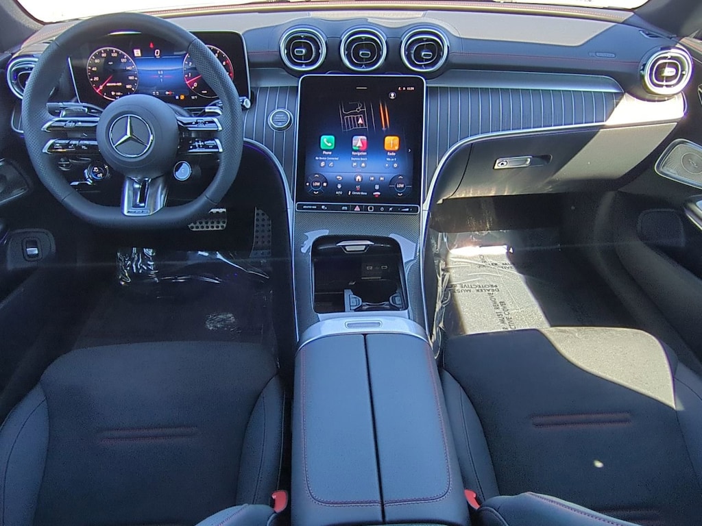 This vehicle Includes the Following Features and Options: 11.9" Center Touchscreen Display, 15 Speakers, 4-Wheel Disc Brakes, ABS brakes, Adaptive suspension, Air Conditioning, Alloy wheels, AM/FM radio: SiriusXM w/360L, AMG® Performance Steering Wheel in Nappa Leather, Apple CarPlay®/Android Auto®, Auto High-beam Headlights, Auto tilt-away steering wheel, Auto-dimming door mirrors, Auto-dimming Rear-View mirror, Automatic temperature control, Brake assist, Bumpers: body-color, Child-Seat-Sensing Airbag, Compass, Delay-off headlights, Driver door bin, Driver vanity mirror, Dual front impact airbags, Dual front side impact airbags, Electronic Stability Control, Emergency communication system: Mercedes-Benz Emergency Call Service, Exterior Parking Camera Rear, First Aid Kit, Four wheel independent suspension, Front anti-roll bar, Front Bucket Seats, Front Center Armrest, Front dual zone A/C, Front reading lights, Fully automatic headlights, Garage door transmitter: HomeLink, HD Radio, Head restraints memory, Heated door mirrors, Heated Front Seats, Heated front seats, Illuminated entry, Knee airbag, Leather steering wheel, Low tire pressure warning, MB Navigation, MB-Tex/Microfiber Upholstery with Red Stitching, Memory seat, Metal Weave Center Console, Navigation system: MBUX, Occupant sensing airbag, Omission of Colored Seat Belts, Outside temperature display, Overhead airbag, Overhead console, Panic alarm, Passenger door bin, Passenger vanity mirror, Piano Black Lacquer Center Console, Power adjustable front head restraints, Power door mirrors, Power driver seat, Power moonroof: Panorama, Power passenger seat, Power steering, Power windows, Radio data system, Radio: Burmester® Surround Sound System, Rain sensing wipers, Rear anti-roll bar, Rear fog lights, Rear Side Airbags, Rear window defroster, Remote keyless entry, Security system, SiriusXM Satellite Radio, Speed control, Speed-sensing steering, Split folding rear seat, Spoiler, Sport steering wheel, Steering wheel memory, Steering wheel mounted audio controls, Tachometer, Telescoping steering wheel, Tilt steering wheel, Traction control, Trip computer, Turn signal indicator mirrors, Variably intermittent wipers, Wheels: 19" AMG® Multi-Spoke with Black Accents, Wheels: 20" AMG® Multi-Spoke Y-Design with Black Accents, Wireless Android Auto®, and Wireless Apple CarPlay®.