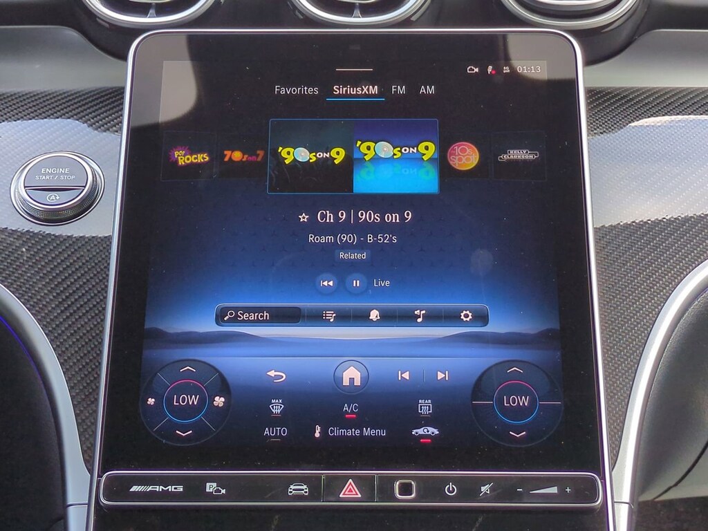 This vehicle Includes the Following Features and Options: AMG® Carbon Fiber Package I, AMG® DYNAMIC PLUS Package (Dynamic AMG® Engine Mounts and Red AMG® Performance Composite Brake Caliper), AMG® Exterior Carbon-Fiber Package I, AMG® Night Package II, AMG® Night Package Plus (Badging on Wings and Trunk Lid in Black, Darkened AMG® Specific Radiator Grille, and High-Gloss Black Elements), Pinnacle Trim (DIGITAL LIGHT with Projections, Head-Up Display, and MBUX Augmented Reality For Navigation), USB Package Plus, 11.9" Center Touchscreen Display, 15 Speakers, 4-Wheel Disc Brakes, ABS brakes, Active Distance Assist DISTRONIC®, Adaptive suspension, Air Conditioning, Alloy wheels, AM/FM radio: SiriusXM w/360L, AMG® Performance Steering Wheel in Nappa/Microfiber, AMG® Real Performance Sound, Apple CarPlay®/Android Auto®, Auto High-beam Headlights, Auto tilt-away steering wheel, Auto-dimming door mirrors, Auto-dimming Rear-View mirror, Automatic temperature control, Black Fine Structure Center Console, Brake assist, Bumpers: body-color, Child-Seat-Sensing Airbag, Compass, Dashcam, Delay-off headlights, Driver door bin, Driver vanity mirror, Dual front impact airbags, Dual front side impact airbags, Electronic Stability Control, Emergency communication system: Mercedes-Benz Emergency Call Service, Exterior Parking Camera Rear, First Aid Kit, Four wheel independent suspension, Front anti-roll bar, Front Bucket Seats, Front Center Armrest, Front dual zone A/C, Front reading lights, Fully automatic headlights, Garage door transmitter: HomeLink, HD Radio, Head restraints memory, Heated door mirrors, Heated Front Seats, Heated front seats, Heated Steering Wheel, Illuminated entry, Knee airbag, Leather steering wheel, Low tire pressure warning, MB Navigation, MB-Tex/Microfiber Upholstery with Red Stitching, Memory seat, Navigation system: MBUX, Occupant sensing airbag, Omission of Colored Seat Belts, Outside temperature display, Overhead airbag, Overhead console, Panic alarm, Passenger door bin, Passenger vanity mirror, Piano Black Lacquer Center Console, Power adjustable front head restraints, Power door mirrors, Power driver seat, Power moonroof: Panorama, Power passenger seat, Power steering, Power windows, Radio data system, Radio: Burmester® Surround Sound System, Rain sensing wipers, Rear anti-roll bar, Rear fog lights, Rear Side Airbags, Rear window defroster, Remote keyless entry, Security system, SiriusXM Satellite Radio, Speed control, Speed-sensing steering, Split folding rear seat, Spoiler, Sport steering wheel, Steering wheel memory, Steering wheel mounted audio controls, Tachometer, Telescoping steering wheel, Tilt steering wheel, Traction control, Trip computer, Turn signal indicator mirrors, Variably intermittent wipers, Ventilated Front Seats, Wheels: : 20" AMG® Grey Cross-Spoke Forged, Wheels: 19" AMG® Multi-Spoke with Black Accents, Wireless Android Auto®, and Wireless Apple CarPlay®.