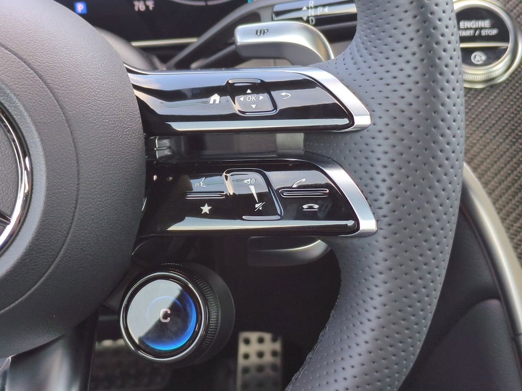 This vehicle Includes the Following Features and Options: 11.9" Center Touchscreen Display, 4-Wheel Disc Brakes, 8 Speakers, ABS brakes, Adaptive suspension, Air Conditioning, Alloy wheels, AM/FM radio: SiriusXM, Apple CarPlay®/Android Auto®, Auto High-beam Headlights, Auto tilt-away steering wheel, Auto-dimming door mirrors, Auto-dimming Rear-View mirror, Auto-leveling suspension, Automatic temperature control, Brake assist, Bumpers: body-color, Child-Seat-Sensing Airbag, Compass, Delay-off headlights, Driver door bin, Driver vanity mirror, Dual front impact airbags, Dual front side impact airbags, Electronic Stability Control, Emergency communication system: eCall Emergency System, Exterior Parking Camera Rear, Four wheel independent suspension, Front anti-roll bar, Front Bucket Seats, Front Center Armrest, Front dual zone A/C, Front reading lights, Fully automatic headlights, Garage door transmitter: HomeLink, Genuine wood dashboard insert, Head restraints memory, Heated door mirrors, Heated front seats, Heated steering wheel, Illuminated entry, Knee airbag, Leather steering wheel, Low tire pressure warning, MB-Tex/Microfiber Upholstery, Memory seat, Navigation System, Occupant sensing airbag, Outside temperature display, Overhead airbag, Overhead console, Panic alarm, Passenger door bin, Passenger vanity mirror, Power adjustable front head restraints, Power door mirrors, Power driver seat, Power Heated Front Seats, Power Liftgate, Power moonroof: Panoramic, Power passenger seat, Power steering, Power windows, Premium audio system: MBUX, Radio data system, Radio: MBUX Multimedia System, Rain sensing wipers, Rear anti-roll bar, Rear fog lights, Rear reading lights, Rear seat center armrest, Rear window defroster, Remote keyless entry, Security system, SiriusXM Satellite Radio, Smartphone Integration, Speed control, Speed-sensing steering, Split folding rear seat, Sport steering wheel, Steering wheel memory, Steering wheel mounted audio controls, Tachometer, Telescoping steering wheel, Tilt steering wheel, Traction control, Trip computer, Turn signal indicator mirrors, Variably intermittent wipers, Wheels: 9.5J x 20" Front and 10.0J x 20" Rear AMG® Twin, Wireless Android Auto®, and Wireless Apple CarPlay®.