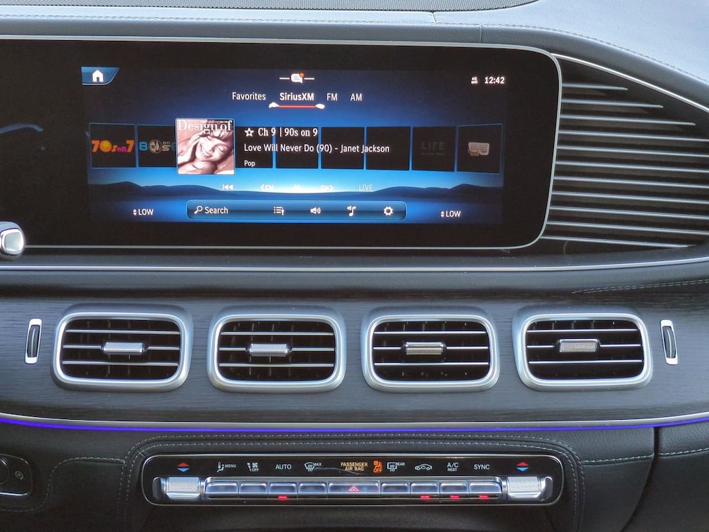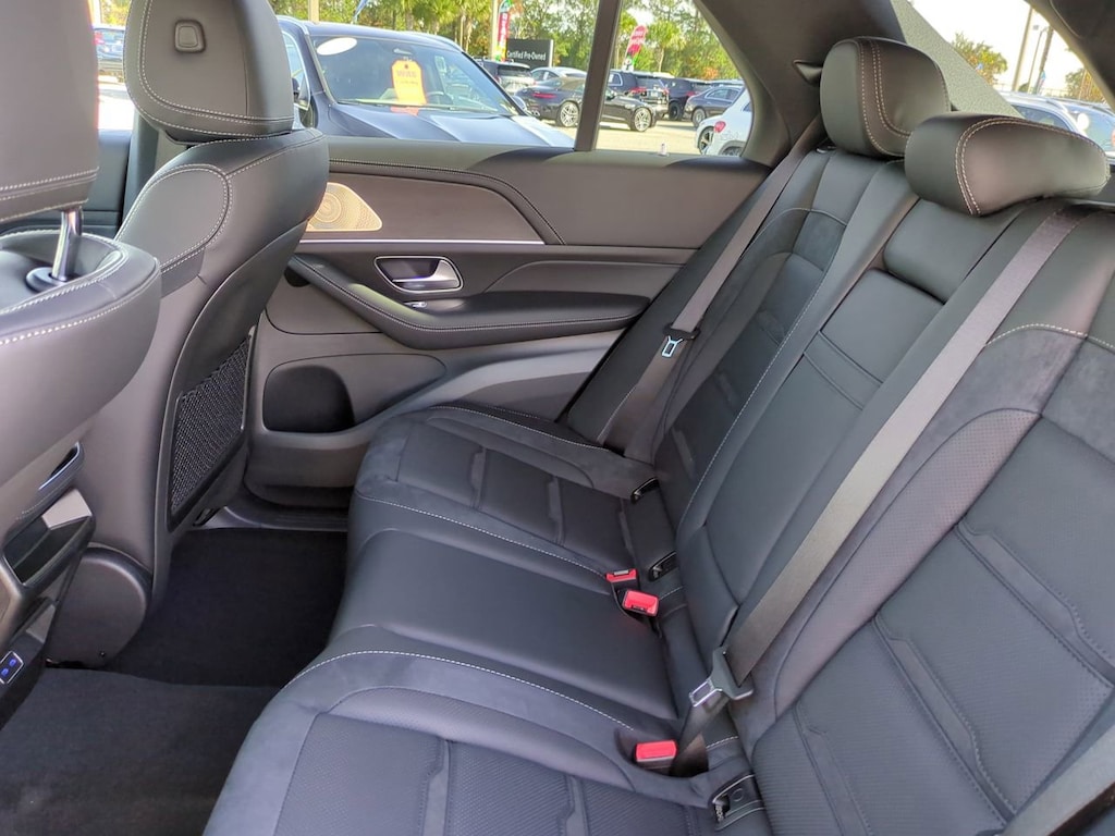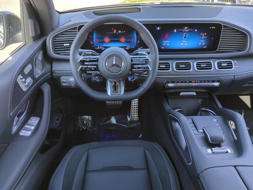 This vehicle Includes the Following Features and Options: 13 Speakers, 20" AMG® Twin 5-Spoke Wheels, 4-Wheel Disc Brakes, ABS brakes, Adaptive suspension, Air Conditioning, Alloy wheels, AM/FM radio: SiriusXM, Anti-whiplash front head restraints, Apple CarPlay®/Android Auto®, Auto High-beam Headlights, Auto tilt-away steering wheel, Auto-dimming door mirrors, Auto-dimming Rear-View mirror, Auto-leveling suspension, Automatic temperature control, Brake assist, Brushed Aluminum Trim, Bumpers: body-color, Burmester® Surround Sound System, Compass, Delay-off headlights, Driver door bin, Driver vanity mirror, Dual front impact airbags, Dual front side impact airbags, Electronic Stability Control, Emergency communication system: eCall Emergency System, Exterior Parking Camera Rear, Four wheel independent suspension, Front anti-roll bar, Front Bucket Seats, Front Center Armrest, Front dual zone A/C, Front reading lights, Fully automatic headlights, Garage door transmitter: HomeLink, Heated and Ventilated Power Front Seats with Driver Memory, Heated door mirrors, Heated front seats, High Performance Tires, Illuminated entry, Knee airbag, Leather steering wheel, Low tire pressure warning, MB-Tex Dashboard and Door Panels, Memory seat, Nappa Leather Upholstery, Navigation system: MBUX, Occupant sensing airbag, Outside temperature display, Overhead airbag, Panic alarm, Passenger door bin, Passenger vanity mirror, Power adjustable front head restraints, Power door mirrors, Power driver seat, Power Liftgate, Power moonroof, Power passenger seat, Power steering, Power windows, Pre-Installation For Online Music Streaming, Premium audio system: MBUX, Radio data system, Radio: 12.3" Media Display with Touchscreen, Rain sensing wipers, Rear anti-roll bar, Rear fog lights, Rear reading lights, Rear seat center armrest, Rear window defroster, Rear window wiper, Remote keyless entry, Security system, Sound Personalization, Speed control, Speed-sensing steering, Speed-Sensitive Wipers, Split folding rear seat, Spoiler, Sport steering wheel, Steering wheel memory, Steering wheel mounted audio controls, Tachometer, Telescoping steering wheel, Tilt steering wheel, Traction control, Trip computer, Turn signal indicator mirrors, Ventilated front seats, and Weather band radio.