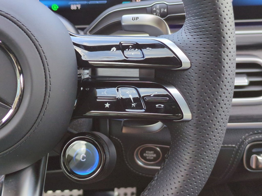 This vehicle Includes the Following Features and Options: 13 Speakers, 21" AMG® Twin 5-Spoke Wheels, 4-Wheel Disc Brakes, ABS brakes, Adaptive suspension, Air Conditioning, Alloy wheels, AM/FM radio: SiriusXM, Anti-whiplash front head restraints, Apple CarPlay®/Android Auto®, Auto High-beam Headlights, Auto tilt-away steering wheel, Auto-dimming door mirrors, Auto-dimming Rear-View mirror, Auto-leveling suspension, Automatic temperature control, Brake assist, Brushed Aluminum Trim, Bumpers: body-color, Child-Seat-Sensing Airbag, Compass, Delay-off headlights, Driver door bin, Driver vanity mirror, Dual front impact airbags, Dual front side impact airbags, Electronic Stability Control, Emergency communication system: eCall Emergency System, Exterior Parking Camera Rear, Four wheel independent suspension, Front anti-roll bar, Front Bucket Seats, Front Center Armrest, Front dual zone A/C, Front reading lights, Fully automatic headlights, Garage door transmitter: HomeLink, Heated door mirrors, Heated front seats, Htd & Vent Power Front Seats w/Driver Memory, Illuminated entry, Knee airbag, Leather steering wheel, Low tire pressure warning, Memory seat, Nappa Leather Dashboard & Door Panels, Nappa Leather Seat Trim, Navigation system: MBUX, Occupant sensing airbag, Outside temperature display, Overhead airbag, Panic alarm, Passenger door bin, Passenger vanity mirror, Power adjustable front head restraints, Power door mirrors, Power driver seat, Power Liftgate, Power moonroof: Panorama, Power passenger seat, Power steering, Power windows, Premium audio system: MBUX, Radio data system, Radio: 12.3" Media Display w/Touchscreen, Rain sensing wipers, Rapid Heating Front Seats, Rear anti-roll bar, Rear fog lights, Rear reading lights, Rear seat center armrest, Rear window defroster, Remote keyless entry, Security system, Speed control, Speed-sensing steering, Speed-Sensitive Wipers, Split folding rear seat, Spoiler, Sport steering wheel, Steering wheel memory, Steering wheel mounted audio controls, Tachometer, Telescoping steering wheel, Tilt steering wheel, Traction control, Trip computer, Turn signal indicator mirrors, Ventilated front seats, and Weather band radio.