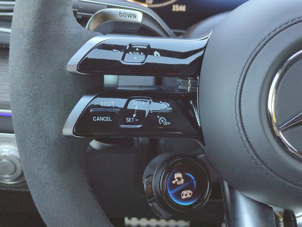 This vehicle Includes the Following Features and Options: 13 Speakers, 4-Wheel Disc Brakes, ABS brakes, Adaptive suspension, Air Conditioning, Alloy wheels, AM/FM radio: SiriusXM, Anti-whiplash front head restraints, Apple CarPlay®/Android Auto®, Auto High-beam Headlights, Auto tilt-away steering wheel, Auto-dimming door mirrors, Auto-dimming Rear-View mirror, Auto-leveling suspension, Automatic temperature control, Brake assist, Brushed Aluminum Trim, Bumpers: body-color, Child-Seat-Sensing Airbag, Compass, Delay-off headlights, Driver door bin, Driver vanity mirror, Dual front impact airbags, Dual front side impact airbags, Electronic Stability Control, Emergency communication system: eCall Emergency System, Exclusive Nappa Leather Upholstery, Exterior Parking Camera Rear, Four wheel independent suspension, Front anti-roll bar, Front Bucket Seats, Front Center Armrest, Front dual zone A/C, Front reading lights, Fully automatic headlights, Garage door transmitter: HomeLink, Heads-Up Display, Heated door mirrors, Heated front seats, Heated steering wheel, High Performance Tires, Htd & Vent Power Front Seats w/Driver Memory, Illuminated entry, Knee airbag, Low tire pressure warning, Memory seat, Nappa Leather Dashboard & Door Panels, Navigation system: MBUX, Occupant sensing airbag, Outside temperature display, Overhead airbag, Panic alarm, Passenger door bin, Passenger vanity mirror, Power adjustable front head restraints, Power door mirrors, Power driver seat, Power Liftgate, Power moonroof: Panorama, Power passenger seat, Power steering, Power windows, Premium audio system: MBUX, Radio data system, Radio: 12.3" Media Display w/Touchscreen, Rain sensing wipers, Rapid Heating Front Seats, Rear anti-roll bar, Rear fog lights, Rear reading lights, Rear seat center armrest, Rear window defroster, Remote keyless entry, Security system, Speed control, Speed-sensing steering, Speed-Sensitive Wipers, Split folding rear seat, Spoiler, Sport steering wheel, Steering wheel memory, Steering wheel mounted audio controls, Tachometer, Telescoping steering wheel, Tilt steering wheel, Traction control, Trip computer, Turn signal indicator mirrors, Ventilated front seats, Weather band radio, and Wheels: 22" AMG® Multispoke.