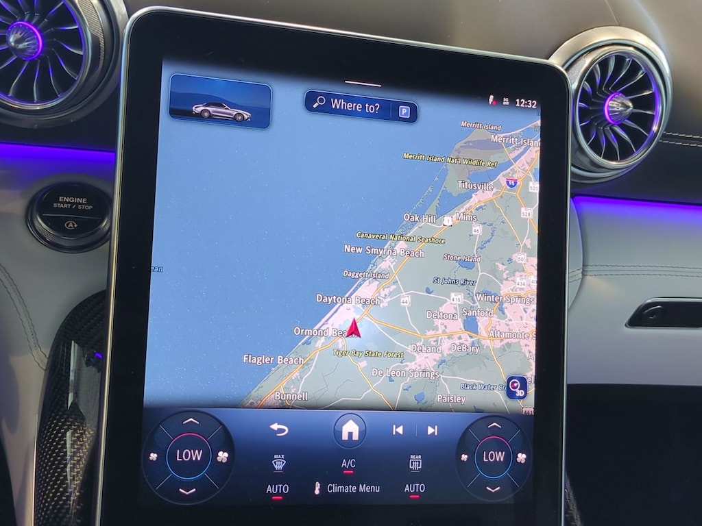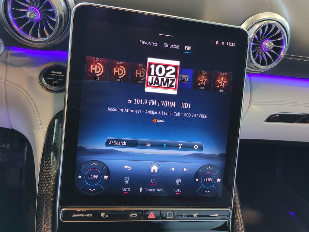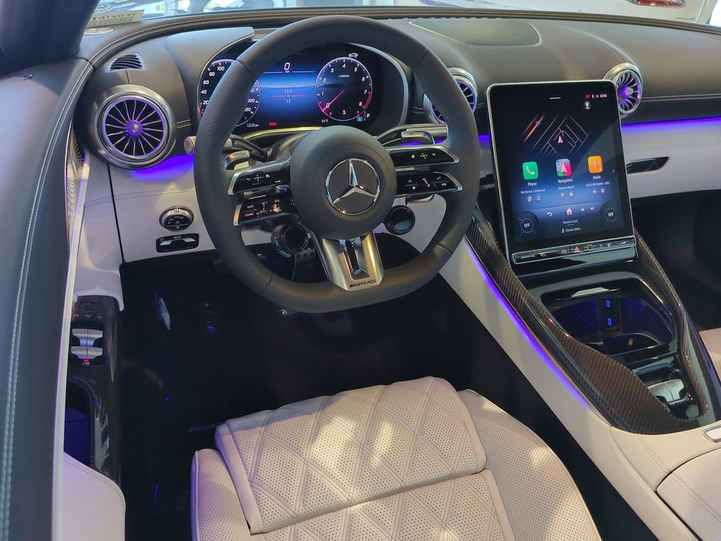 This vehicle Includes the Following Features and Options: AMG® Extended Night Package (Darkened AMG® Specific Front Grille and Model Badging in Black), AMG® Night Package, AMG® Night Package 2, AMG® Night Package Plus, Dark Light Package, Driver Assistance Package, 11 Speakers, 20" AMG® Twin 5-Spoke Wheels, 4-Pack All-Season Floor Mats, 4-Wheel Disc Brakes, ABS brakes, Adaptive suspension, Air Conditioning, Alloy wheels, AMG® Performance Steering Wheel in Nappa Leather, Android Auto®, Apple CarPlay®, Apple CarPlay®/Android Auto®, Auto High-beam Headlights, Auto tilt-away steering wheel, Auto-dimming door mirrors, Auto-dimming Rear-View mirror, Automatic temperature control, Black Microfiber Headliner, Black SoftTop, Brake assist, Bumpers: body-color, Burmester® Surround Sound System, Child-Seat-Sensing Airbag, Convertible roof lining, Convertible roof wind blocker, Delay-off headlights, Driver door bin, Driver vanity mirror, Dual front impact airbags, Dual front side impact airbags, Electronic Stability Control, Emergency communication system, Exterior Parking Camera Rear, First Aid Kit, Four wheel independent suspension, Front anti-roll bar, Front Bucket Seats, Front Center Armrest, Front dual zone A/C, Front reading lights, Garage door transmitter: HomeLink, Glass rear window, Grey Seatbelts, Head restraints memory, Heads-Up Display, Heated and Ventilated Power Front Seats, Heated front seats, Heated steering wheel, High Performance Tires, Illuminated entry, Integrated roll-over protection, Knee airbag, Leather steering wheel, Low tire pressure warning, Memory seat, Nappa Leather Upholstery, Navigation System, Occupant sensing airbag, Outside temperature display, Overhead airbag, Overhead console, Panic alarm, Passenger door bin, Passenger vanity mirror, Performance Trim Line, Power adjustable front head restraints, Power convertible roof, Power door mirrors, Power driver seat, Power passenger seat, Power steering, Power windows, Radio data system, Radio: MBUX Infotainment and Navigation System, Rain sensing wipers, Rear anti-roll bar, Rear fog lights, Rear window defroster, Remote keyless entry, Security system, SiriusXM Radio, Smartphone Integration, Speed control, Speed-sensing steering, Spoiler, Sport steering wheel, Steering wheel memory, Steering wheel mounted audio controls, Tachometer, Telescoping steering wheel, Tilt steering wheel, Touring Trim Line, Traction control, Trip computer, Turn signal indicator mirrors, Variably intermittent wipers, Ventilated front seats, and Wheels: 21" AMG® Forged Cross-Spoke Black.