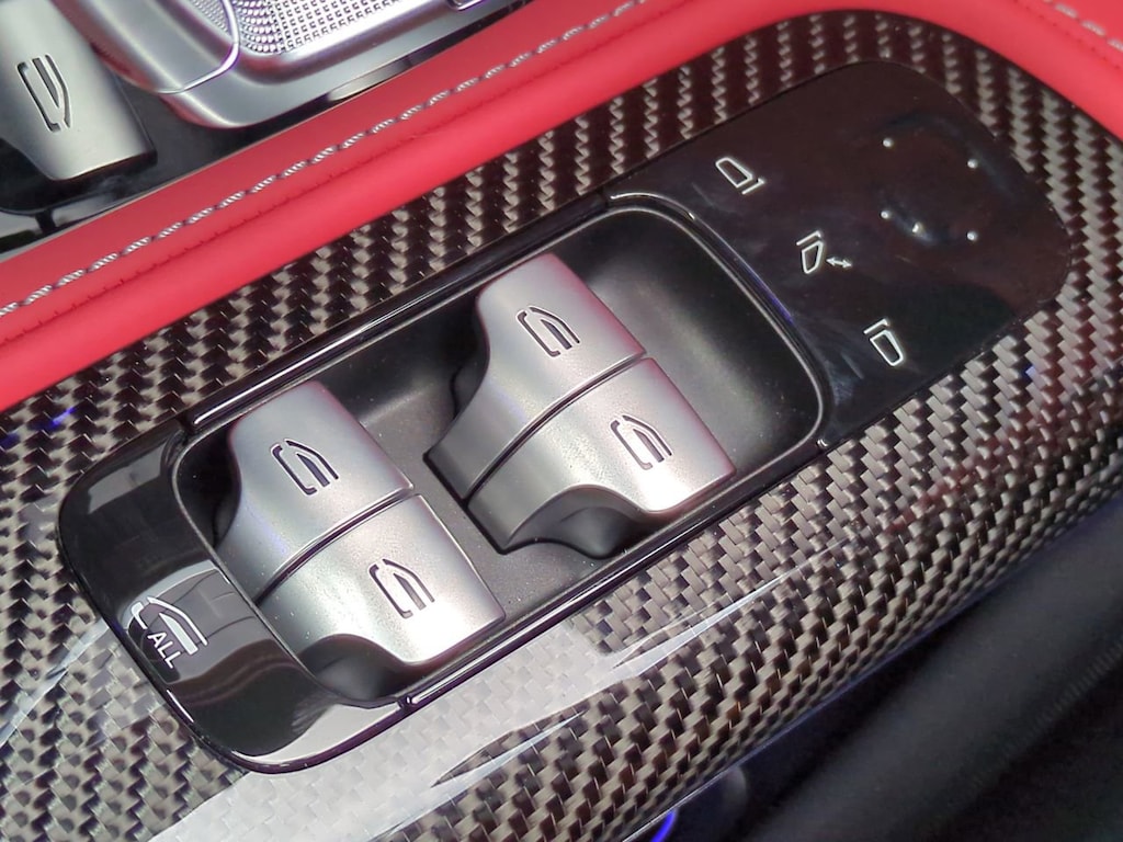 This vehicle Includes the Following Features and Options: AMG® Extended Night Package (Darkened AMG® Specific Front Grille and Model Badging in Black), AMG® Exterior Carbon Fiber Package, AMG® Night Package 2, Dark Light Package, Driver Assistance Package, 11 Speakers, 20" AMG® Twin 5-Spoke Wheels, 4-Wheel Disc Brakes, ABS brakes, Adaptive suspension, Additional Adjustability for AMG® Performance Seats, Air Conditioning, All-Season Floor Mats (4-Pack), Alloy wheels, AMG® Performance Seats, AMG® Performance Steering Wheel in Nappa/Microfiber, Android Auto®, Apple CarPlay®, Apple CarPlay®/Android Auto®, Auto High-beam Headlights, Auto tilt-away steering wheel, Auto-dimming door mirrors, Auto-dimming Rear-View mirror, Automatic temperature control, Black Microfiber Headliner, Black SoftTop, Brake assist, Bumpers: body-color, Burmester® Surround Sound System, Child-Seat-Sensing Airbag, Convertible roof lining, Convertible roof wind blocker, Dash Cam, Delay-off headlights, Driver door bin, Driver vanity mirror, Dual front impact airbags, Dual front side impact airbags, Electronic Stability Control, Emergency communication system, Exterior Parking Camera Rear, Four wheel independent suspension, Front anti-roll bar, Front Bucket Seats, Front Center Armrest, Front dual zone A/C, Front reading lights, Garage door transmitter: HomeLink, Glass rear window, Heads-Up Display, Heated & Ventilated Power Front Seats, Heated front seats, Heated steering wheel, High Performance Tires, Illuminated entry, Integrated roll-over protection, Knee airbag, Leather steering wheel, Low tire pressure warning, Memory seat, Nappa Leather Upholstery, Navigation System, Occupant sensing airbag, Outside temperature display, Overhead airbag, Overhead console, Panic alarm, Passenger door bin, Passenger vanity mirror, Performance Trim Line, Power adjustable front head restraints, Power convertible roof, Power door mirrors, Power driver seat, Power passenger seat, Power steering, Power windows, Radio data system, Radio: MBUX Infotainment & Navigation System, Rain sensing wipers, Rear anti-roll bar, Rear fog lights, Rear window defroster, Remote keyless entry, Security system, SiriusXM Radio, Smartphone Integration, Speed control, Speed-sensing steering, Spoiler, Sport steering wheel, Steering wheel memory, Steering wheel mounted audio controls, Tachometer, Telescoping steering wheel, Tilt steering wheel, Touring Trim Line, Traction control, Trip computer, Turn signal indicator mirrors, Variably intermittent wipers, Ventilated front seats, Wheel Locking Bolts, and Wheels: 21" AMG® Forged Cross-Spoke, Black.