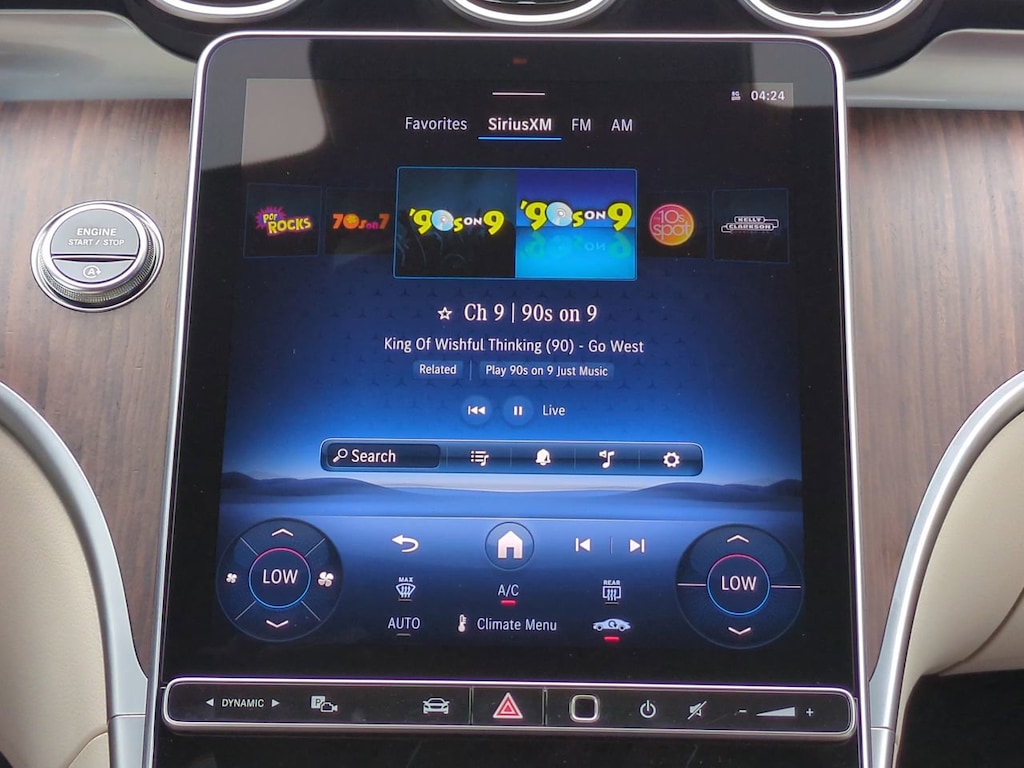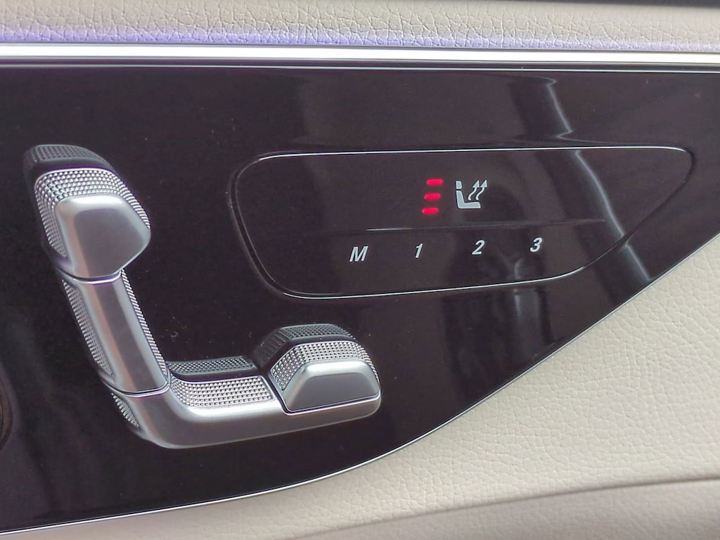 This vehicle Includes the Following Features and Options: 11.9" Center Touchscreen Display, 4-Wheel Disc Brakes, 5 Speakers, ABS brakes, Air Conditioning, Alloy wheels, AM/FM radio: SiriusXM, Anti-whiplash front head restraints, Apple CarPlay®/Android Auto®, Auto High-beam Headlights, Auto tilt-away steering wheel, Auto-dimming door mirrors, Auto-dimming Rear-View mirror, Automatic temperature control, Black Fabric Headliner, Brake assist, Bumpers: body-color, Child-Seat-Sensing Airbag, Compass, Delay-off headlights, Driver door bin, Driver vanity mirror, Dual front impact airbags, Dual front side impact airbags, Electronic Stability Control, Emergency communication system: Mercedes-Benz Emergency Call Service, Exterior Parking Camera Rear, First Aid Kit, Four wheel independent suspension, Front anti-roll bar, Front Bucket Seats, Front Center Armrest, Front dual zone A/C, Front reading lights, Fully automatic headlights, Garage door transmitter: HomeLink, Genuine wood dashboard insert, GUARD 360, Head restraints memory, Heated door mirrors, Heated front seats, Illuminated entry, Knee airbag, Leather steering wheel, Low tire pressure warning, MB-Tex Upholstery, Memory seat, Occupant sensing airbag, Outside temperature display, Overhead airbag, Overhead console, Panic alarm, Panorama Sunroof, Passenger door bin, Passenger vanity mirror, Piano Black Lacquer Center Console, Power adjustable front head restraints, Power door mirrors, Power driver seat, Power Heated Front Seats with Memory, Power moonroof, Power passenger seat, Power steering, Power windows, Premium audio system: MBUX, Radio data system, Radio: FrontBass 5-Speaker Audio System, Rain sensing wipers, Rear anti-roll bar, Rear fog lights, Rear reading lights, Rear seat center armrest, Rear window defroster, Remote keyless entry, Security system, SiriusXM Satellite Radio, Speed control, Speed-sensing steering, Split folding rear seat, Steering wheel memory, Steering wheel mounted audio controls, Tachometer, Telescoping steering wheel, Tilt steering wheel, Traction control, Trip computer, Turn signal indicator mirrors, Variably intermittent wipers, Weather band radio, Wheels: 7.5J x 18" Front and 8.5J x 18" Rear 5-Spoke, and Wheels: 7.5J x 18" Front and 8.5J x 18" Rear Multispoke.