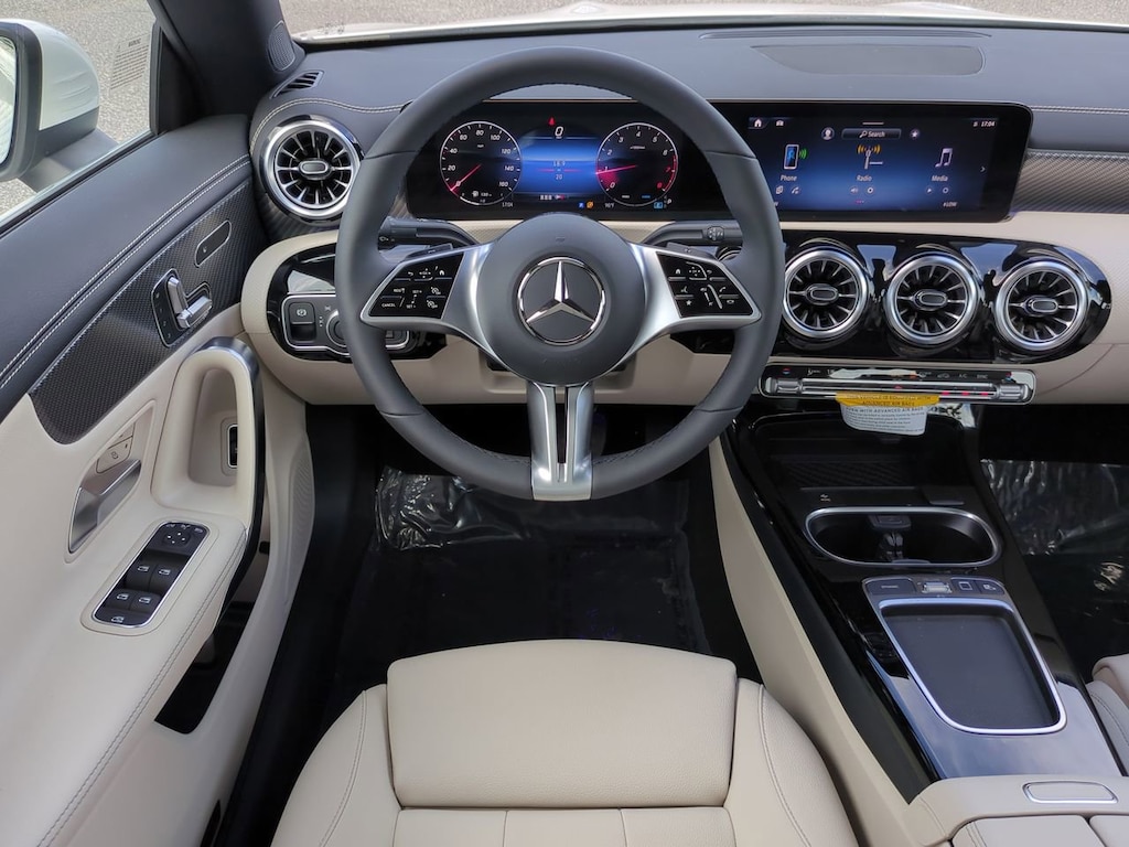 This vehicle Includes the Following Features and Options: 18" Multi-Spoke Alloy Wheels, 4-Wheel Disc Brakes, 8 Speakers, 8-Way Power-Adjustable Front Sport Seats, ABS brakes, Air Conditioning, Alloy wheels, AM/FM radio: SiriusXM, Apple CarPlay®/Android Auto®, Auto High-beam Headlights, Auto-dimming Rear-View mirror, Automatic temperature control, Brake assist, Brushed Aluminum Interior Trim, Bumpers: body-color, Child-Seat-Sensing Airbag, Delay-off headlights, Driver door bin, Driver vanity mirror, Dual front impact airbags, Dual front side impact airbags, Electronic Stability Control, Emergency communication system: eCall Emergency System, Exterior Parking Camera Rear, Four wheel independent suspension, Front anti-roll bar, Front Bucket Seats, Front Center Armrest, Front dual zone A/C, Front reading lights, Fully automatic headlights, Heated door mirrors, Illuminated entry, Knee airbag, Leather steering wheel, Low tire pressure warning, MB-Tex Upholstery, Memory seat, Occupant sensing airbag, Outside temperature display, Overhead airbag, Overhead console, Panic alarm, Passenger door bin, Passenger vanity mirror, Power door mirrors, Power driver seat, Power moonroof, Power passenger seat, Power steering, Power windows, Radio data system, Radio: MBUX Multimedia System, Rain sensing wipers, Rear anti-roll bar, Rear fog lights, Rear reading lights, Rear seat center armrest, Rear window defroster, Remote keyless entry, Security system, SiriusXM Trial Subscription, Speed control, Speed-sensing steering, Split folding rear seat, Steering wheel mounted audio controls, Tachometer, Telescoping steering wheel, Tilt steering wheel, Traction control, Trip computer, Turn signal indicator mirrors, and Variably intermittent wipers.