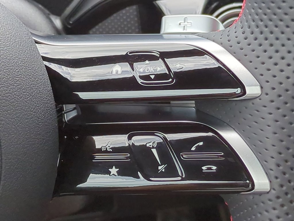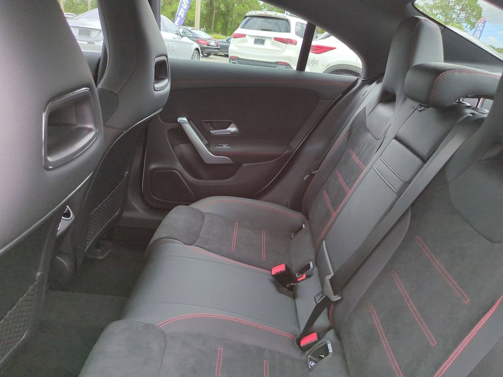 This vehicle Includes the Following Features and Options: 18" Multi-Spoke Alloy Wheels, 4-Wheel Disc Brakes, 8 Speakers, 8-Way Power-Adjustable Front Sport Seats, ABS brakes, Air Conditioning, Alloy wheels, AM/FM radio: SiriusXM, Apple CarPlay®/Android Auto®, Auto High-beam Headlights, Auto-dimming Rear-View mirror, Automatic temperature control, Brake assist, Brushed Aluminum Interior Trim, Bumpers: body-color, Child-Seat-Sensing Airbag, Delay-off headlights, Driver door bin, Driver vanity mirror, Dual front impact airbags, Dual front side impact airbags, Electronic Stability Control, Emergency communication system: eCall Emergency System, Exterior Parking Camera Rear, Four wheel independent suspension, Front anti-roll bar, Front Bucket Seats, Front Center Armrest, Front dual zone A/C, Front reading lights, Fully automatic headlights, Heated door mirrors, Illuminated entry, Knee airbag, Leather steering wheel, Low tire pressure warning, MB-Tex Upholstery, Memory seat, Occupant sensing airbag, Outside temperature display, Overhead airbag, Overhead console, Panic alarm, Passenger door bin, Passenger vanity mirror, Power door mirrors, Power driver seat, Power moonroof, Power passenger seat, Power steering, Power windows, Radio data system, Radio: MBUX Multimedia System, Rain sensing wipers, Rear anti-roll bar, Rear fog lights, Rear reading lights, Rear seat center armrest, Rear window defroster, Remote keyless entry, Security system, SiriusXM Trial Subscription, Speed control, Speed-sensing steering, Split folding rear seat, Steering wheel mounted audio controls, Tachometer, Telescoping steering wheel, Tilt steering wheel, Traction control, Trip computer, Turn signal indicator mirrors, and Variably intermittent wipers.