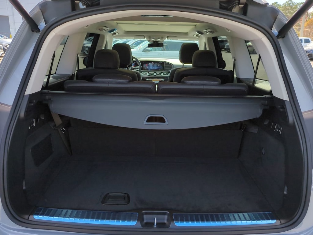 This vehicle Includes the Following Features and Options: 13 Speakers, 3rd row seats: split-bench, 4-Wheel Disc Brakes, 7-Seat Configuration, ABS brakes, Active Multicontour Power Front Seats w/Massage, Adaptive suspension, Air Conditioning, Alloy wheels, AM/FM radio: SiriusXM, Apple CarPlay®/Android Auto®, Auto High-beam Headlights, Auto tilt-away steering wheel, Auto-dimming door mirrors, Auto-dimming Rear-View mirror, Auto-leveling suspension, Automatic temperature control, Brake assist, Bumpers: body-color, Child-Seat-Sensing Airbag, Compass, Delay-off headlights, Driver door bin, Driver vanity mirror, Dual front impact airbags, Dual front side impact airbags, Electronic Stability Control, Emergency communication system: eCall Emergency System, Exterior Parking Camera Rear, Four wheel independent suspension, Front anti-roll bar, Front Bucket Seats, Front Center Armrest w/Storage, Front dual zone A/C, Front reading lights, Fully automatic headlights, Garage door transmitter: HomeLink, Head restraints memory, Heated door mirrors, Heated front seats, Heated rear seats, Heated steering wheel, Illuminated entry, Illuminated running boards, Knee airbag, Leather steering wheel, Leather Upholstery, Low tire pressure warning, Memory seat, Navigation system: MB Navigation, Occupant sensing airbag, Outside temperature display, Overhead airbag, Overhead console, Panic alarm, Passenger door bin, Passenger vanity mirror, Performance Tires, Power adjustable front head restraints, Power door mirrors, Power driver seat, Power Liftgate, Power moonroof: Panorama, Power passenger seat, Power steering, Power windows, Premium audio system: MBUX, Radio: Burmester® Surround Sound System, Rain sensing wipers, Rear air conditioning, Rear anti-roll bar, Rear dual zone A/C, Rear fog lights, Rear reading lights, Rear seat center armrest, Rear window defroster, Rear window wiper, Reclining 3rd row seat, Remote keyless entry, Security system, Speed control, Speed-sensing steering, Speed-Sensitive Wipers, Split folding rear seat, Spoiler, Steering wheel memory, Steering wheel mounted audio controls, Tachometer, Telescoping steering wheel, Tilt steering wheel, Traction control, Trip computer, Turn signal indicator mirrors, Variably intermittent wipers, Ventilated front seats, Weather band radio, and Wheels: 22" AMG® Multi-Spoke.