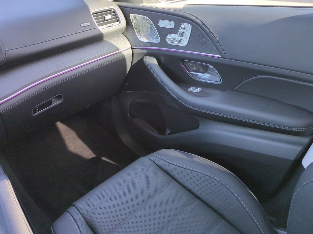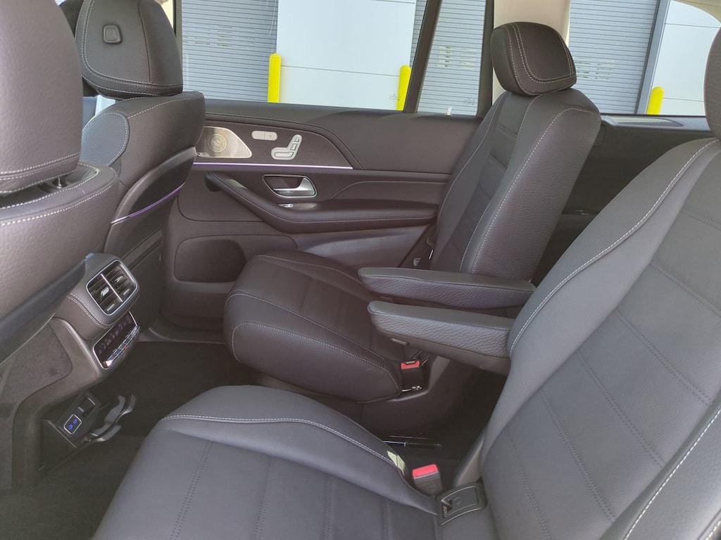 This vehicle Includes the Following Features and Options: 13 Speakers, 3rd row seats: split-bench, 4-Wheel Disc Brakes, 7-Seat Configuration, ABS brakes, Active Multicontour Power Front Seats w/Massage, Adaptive suspension, Air Conditioning, Alloy wheels, AM/FM radio: SiriusXM, Apple CarPlay®/Android Auto®, Auto High-beam Headlights, Auto tilt-away steering wheel, Auto-dimming door mirrors, Auto-dimming Rear-View mirror, Auto-leveling suspension, Automatic temperature control, Brake assist, Bumpers: body-color, Child-Seat-Sensing Airbag, Compass, Delay-off headlights, Driver door bin, Driver vanity mirror, Dual front impact airbags, Dual front side impact airbags, Electronic Stability Control, Emergency communication system: eCall Emergency System, Exterior Parking Camera Rear, Four wheel independent suspension, Front anti-roll bar, Front Bucket Seats, Front Center Armrest w/Storage, Front dual zone A/C, Front reading lights, Fully automatic headlights, Garage door transmitter: HomeLink, Head restraints memory, Heated door mirrors, Heated front seats, Heated rear seats, Heated steering wheel, Illuminated entry, Illuminated running boards, Knee airbag, Leather steering wheel, Leather Upholstery, Low tire pressure warning, Memory seat, Navigation system: MB Navigation, Occupant sensing airbag, Outside temperature display, Overhead airbag, Overhead console, Panic alarm, Passenger door bin, Passenger vanity mirror, Performance Tires, Power adjustable front head restraints, Power door mirrors, Power driver seat, Power Liftgate, Power moonroof: Panorama, Power passenger seat, Power steering, Power windows, Premium audio system: MBUX, Radio: Burmester® Surround Sound System, Rain sensing wipers, Rear air conditioning, Rear anti-roll bar, Rear dual zone A/C, Rear fog lights, Rear reading lights, Rear seat center armrest, Rear window defroster, Rear window wiper, Reclining 3rd row seat, Remote keyless entry, Security system, Speed control, Speed-sensing steering, Speed-Sensitive Wipers, Split folding rear seat, Spoiler, Steering wheel memory, Steering wheel mounted audio controls, Tachometer, Telescoping steering wheel, Tilt steering wheel, Traction control, Trip computer, Turn signal indicator mirrors, Variably intermittent wipers, Ventilated front seats, Weather band radio, and Wheels: 22" AMG® Multi-Spoke.