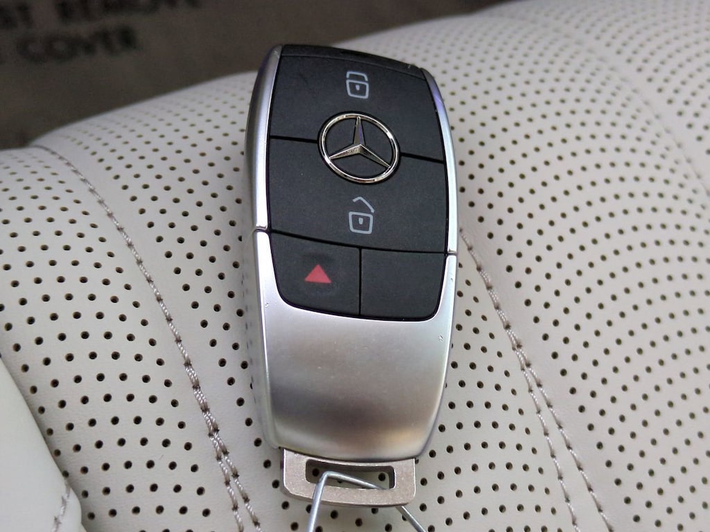 This vehicle Includes the Following Features and Options: 12-Way Power Front Seats w/Memory Function, 18 Speakers, 4-Wheel Disc Brakes, ABS brakes, Adaptive suspension, Air Conditioning, Alloy wheels, AM/FM radio: SiriusXM, Apple CarPlay®/Android Auto®, Auto High-beam Headlights, Auto tilt-away steering wheel, Auto-dimming door mirrors, Auto-dimming Rear-View mirror, Automatic temperature control, Bodyside moldings, Brake assist, Bumpers: body-color, Child-Seat-Sensing Airbag, Compass, Delay-off headlights, Driver door bin, Driver vanity mirror, Dual front impact airbags, Dual front side impact airbags, Electronic Stability Control, Emergency communication system: Mercedes-Benz Emergency Call Service, Exterior Parking Camera Rear, Front anti-roll bar, Front Bucket Seats, Front Center Armrest, Front dual zone A/C, Front reading lights, Front wheel independent suspension, Garage door transmitter: HomeLink, Genuine wood console insert, Genuine wood dashboard insert, Genuine wood door panel insert, Head restraints memory, Headlight cleaning, Heated door mirrors, Heated front seats, Heated rear seats, Heated steering wheel, Illuminated entry, Knee airbag, Leather steering wheel, Low tire pressure warning, Memory seat, Nappa Leather Upholstery, Navigation system: Navigation with Electric Intelligence, Occupant sensing airbag, Outside temperature display, Overhead airbag, Overhead console, Panic alarm, Passenger door bin, Passenger vanity mirror, Power adjustable front head restraints, Power door mirrors, Power driver seat, Power moonroof, Power passenger seat, Power steering, Power windows, Radio data system, Radio: Burmester® 3D Surround Sound System, Rain sensing wipers, Rear air conditioning, Rear anti-roll bar, Rear fog lights, Rear reading lights, Rear seat center armrest, Rear side impact airbag, Rear window defroster, Rear window wiper, Remote keyless entry, Security system, Speed control, Speed-sensing steering, Split folding rear seat, Sport steering wheel, Steering wheel memory, Steering wheel mounted audio controls, Telescoping steering wheel, Tilt steering wheel, Traction control, Trip computer, Turn signal indicator mirrors, Variably intermittent wipers, Ventilated front seats, and Wheels: 20" AMG® 10-Spoke w/Black Accents.