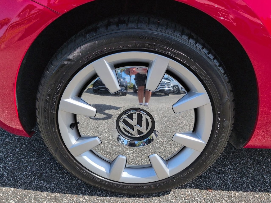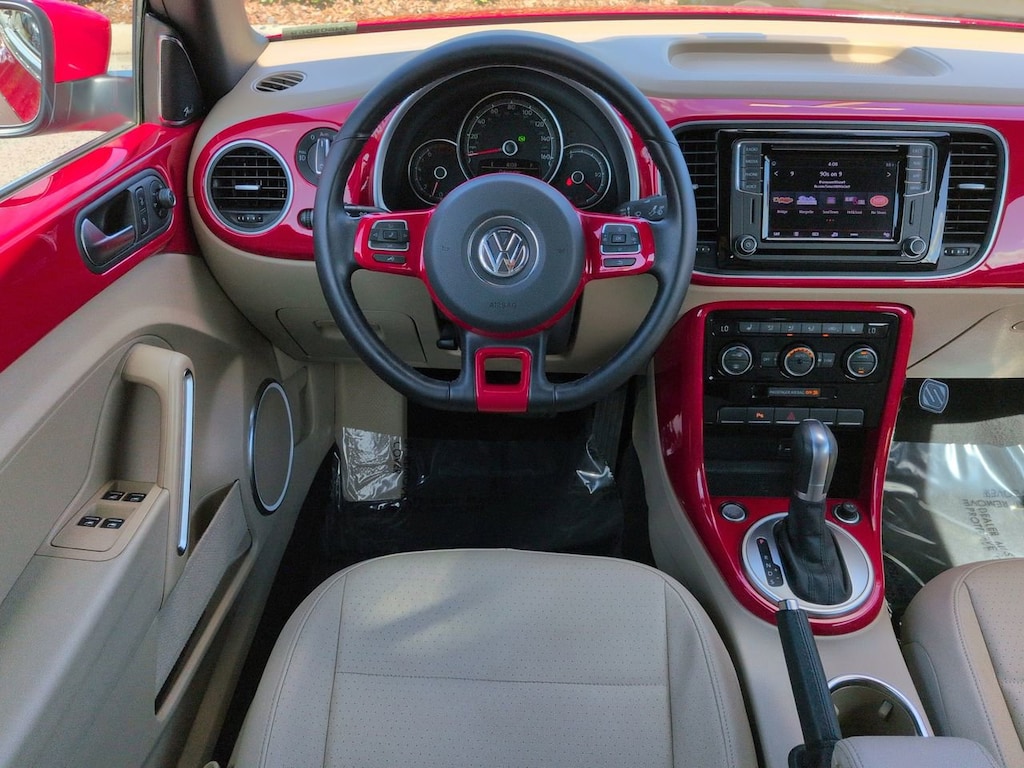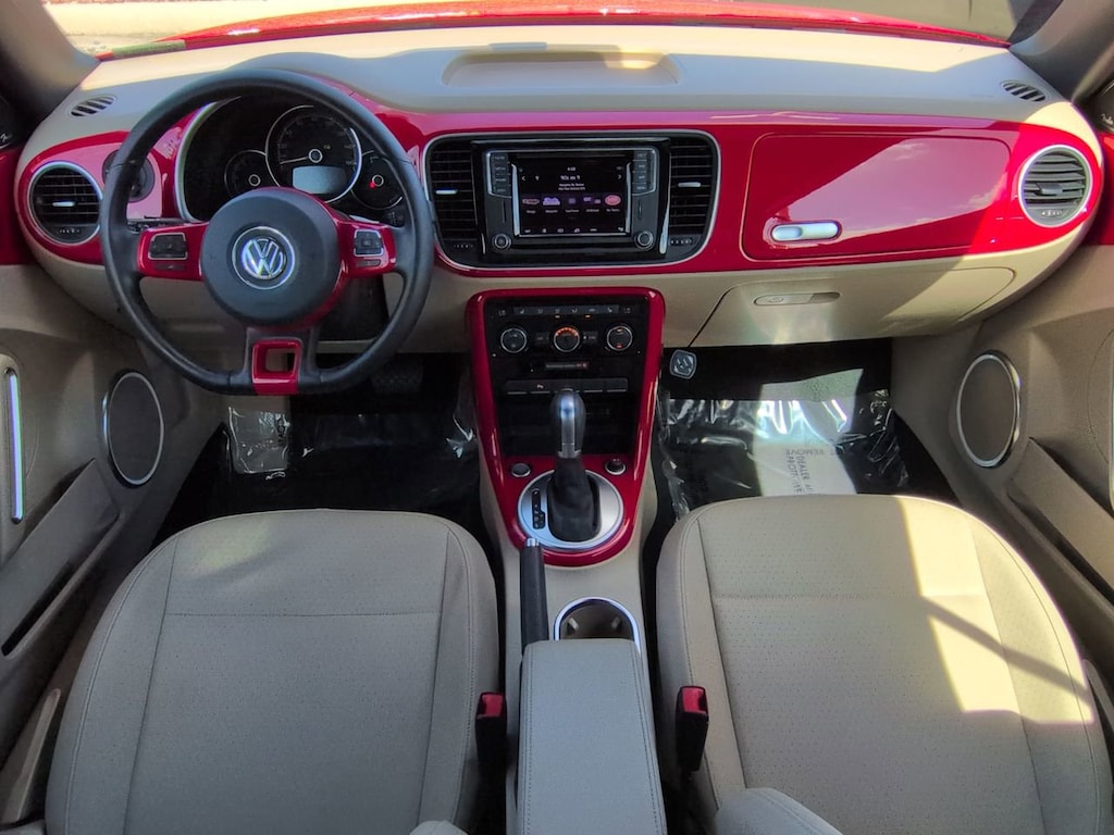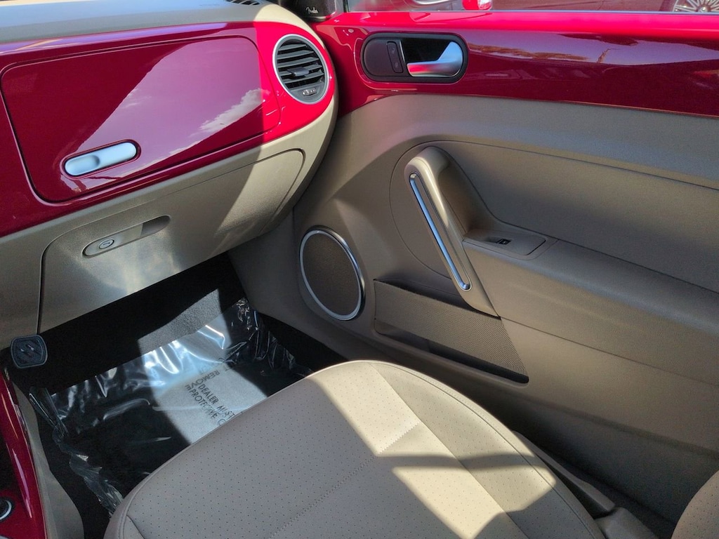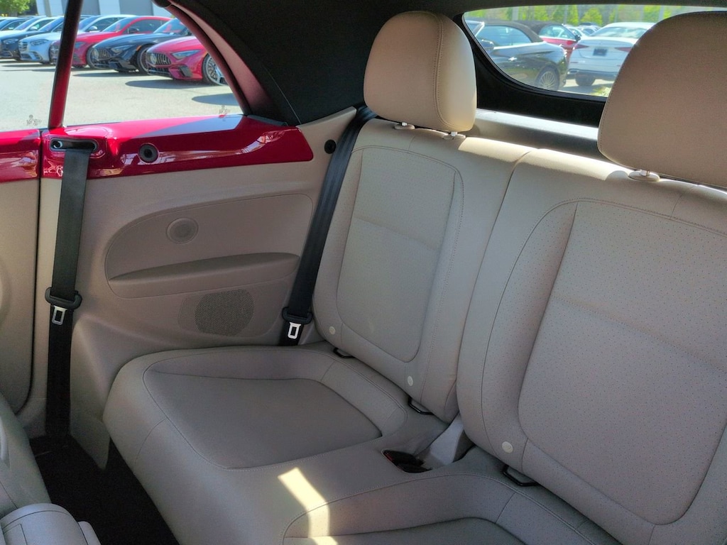 This vehicle Includes the Following Features and Options: 17" 10-Spoke Alloy Wheels, 4-Wheel Disc Brakes, 8 Speakers, ABS brakes, Air Conditioning, Alloy wheels, AM/FM radio: SiriusXM, Auto-dimming Rear-View mirror, Automatic temperature control, Bodyside moldings, Brake assist, Bumpers: body-color, CD player, Convertible roof lining, Delay-off headlights, Driver door bin, Driver vanity mirror, Dual front impact airbags, Dual front side impact airbags, Electronic Stability Control, Emergency communication system: VW Car-Net services (capabilities require enrollment or subscription), Exterior Parking Camera Rear, Four wheel independent suspension, Front anti-roll bar, Front Bucket Seats, Front Center Armrest w/Storage, Front dual zone A/C, Front reading lights, Fully automatic headlights, Glass rear window, Heated door mirrors, Heated Front Comfort Seats, Heated front seats, Illuminated entry, Integrated roll-over protection, Leather Shift Knob, Leather steering wheel, Low tire pressure warning, Occupant sensing airbag, Outside temperature display, Overhead airbag, Overhead console, Panic alarm, Passenger door bin, Passenger vanity mirror, Power convertible roof, Power door mirrors, Power steering, Power windows, Radio data system, Radio: AM/FM/HD 6.3" Touch Nav w/WMA/MP3/FLAC/CD, Radio: AM/FM/HD 6.3" Touchscreen w/WMA/MP3/FLAC/CD, Rain sensing wipers, Rear anti-roll bar, Rear window defroster, Remote keyless entry, Speed control, Speed-sensing steering, Speed-Sensitive Wipers, Split folding rear seat, Spoiler, Steering wheel mounted audio controls, Tachometer, Telescoping steering wheel, Tilt steering wheel, Traction control, Trip computer, Turn signal indicator mirrors, V-Tex Leatherette Seating Surfaces, and Variably intermittent wipers.