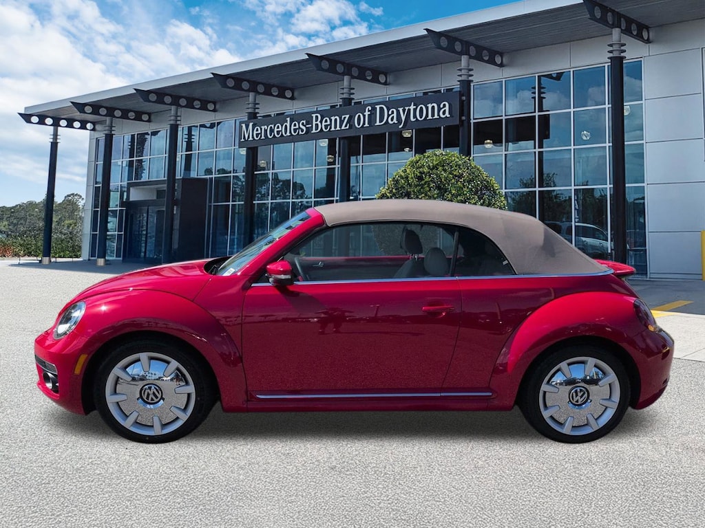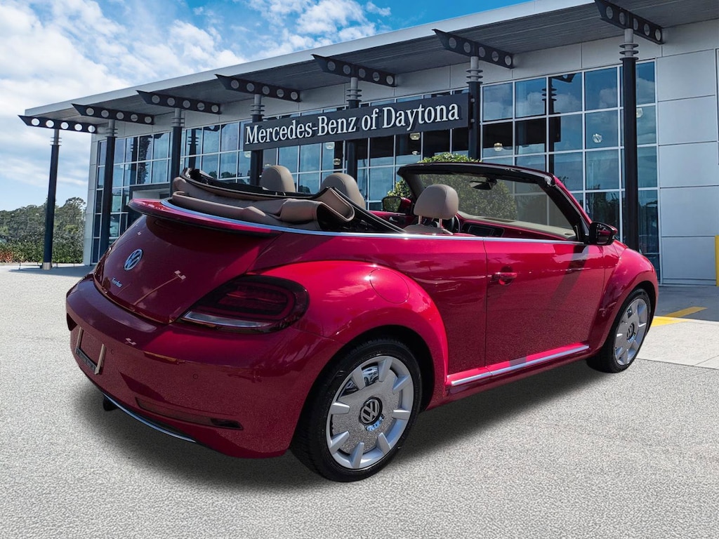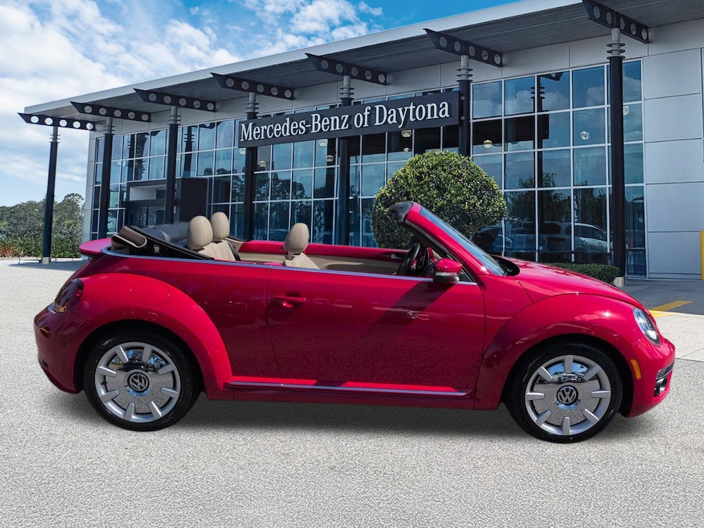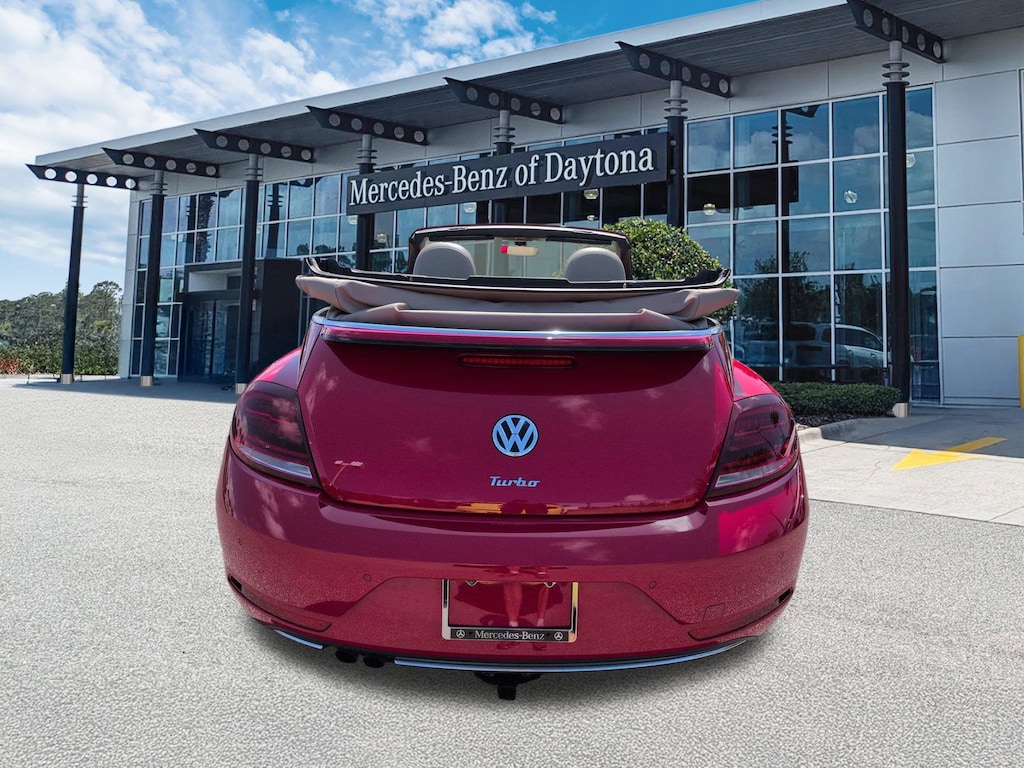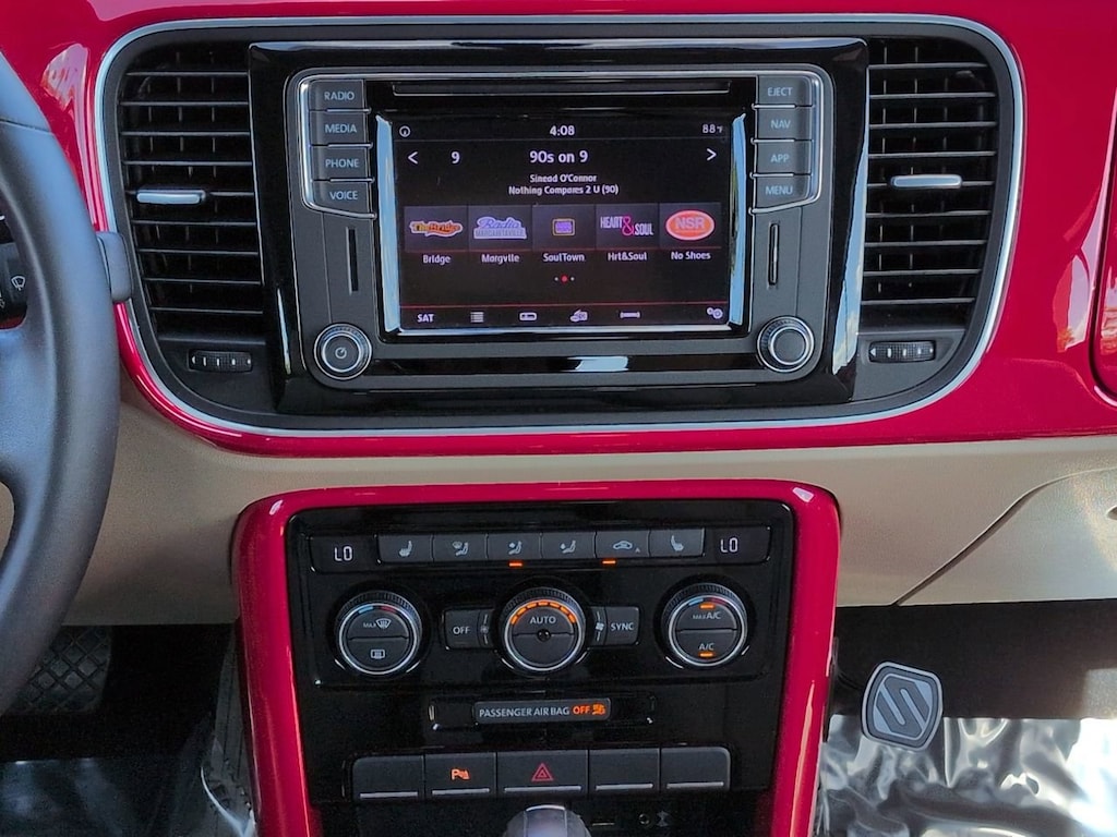 This vehicle Includes the Following Features and Options: 17" 10-Spoke Alloy Wheels, 4-Wheel Disc Brakes, 8 Speakers, ABS brakes, Air Conditioning, Alloy wheels, AM/FM radio: SiriusXM, Auto-dimming Rear-View mirror, Automatic temperature control, Bodyside moldings, Brake assist, Bumpers: body-color, CD player, Convertible roof lining, Delay-off headlights, Driver door bin, Driver vanity mirror, Dual front impact airbags, Dual front side impact airbags, Electronic Stability Control, Emergency communication system: VW Car-Net services (capabilities require enrollment or subscription), Exterior Parking Camera Rear, Four wheel independent suspension, Front anti-roll bar, Front Bucket Seats, Front Center Armrest w/Storage, Front dual zone A/C, Front reading lights, Fully automatic headlights, Glass rear window, Heated door mirrors, Heated Front Comfort Seats, Heated front seats, Illuminated entry, Integrated roll-over protection, Leather Shift Knob, Leather steering wheel, Low tire pressure warning, Occupant sensing airbag, Outside temperature display, Overhead airbag, Overhead console, Panic alarm, Passenger door bin, Passenger vanity mirror, Power convertible roof, Power door mirrors, Power steering, Power windows, Radio data system, Radio: AM/FM/HD 6.3" Touch Nav w/WMA/MP3/FLAC/CD, Radio: AM/FM/HD 6.3" Touchscreen w/WMA/MP3/FLAC/CD, Rain sensing wipers, Rear anti-roll bar, Rear window defroster, Remote keyless entry, Speed control, Speed-sensing steering, Speed-Sensitive Wipers, Split folding rear seat, Spoiler, Steering wheel mounted audio controls, Tachometer, Telescoping steering wheel, Tilt steering wheel, Traction control, Trip computer, Turn signal indicator mirrors, V-Tex Leatherette Seating Surfaces, and Variably intermittent wipers.